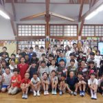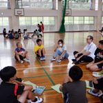 まず、体育館で自己紹介の後、4つのグループに分かれて、ハンカチ落としに似たゲームで楽しみました。