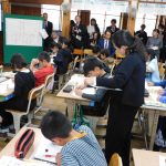 11月5日(水)、小中連携学力向上推進指定事業の公開授業研究会がありました。塩田中校区の小中学校の先生方に、5年生国語科「注文の多い料理店」の授業を参観していただきました。