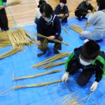 12月20日(土)に、久間地区地域コミュニティと北志田老人会の皆さんと一緒に、6年生がしめ縄作りを体験しました。
