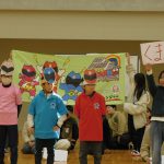 まず、それぞれの学校で、学校紹介をしました。久間っ子戦隊ガンバルンジャーも登場して、元気よく発表してくれました。