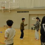 次は、グループに分かれて、担当の先生と一緒に自己紹介をしました。幼稚園・保育園で一緒だった友だち、初めて会う友だちもいたと思いますが、一人一人しっかりと言うことができていました。その後、「じゃんけんサッカー」というゲームをしました。じゃんけんをしながら勝ち抜けてゴールするとポイントが入ります。ルールは簡単ですが、とても盛り上がっていました。