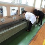 厚生チームの皆さんには、子供たちの力では、なかなか落とせないトイレや手洗い場の汚れをしっかりと落としていただきました。トイレも手洗い場もピカピカになりました。
