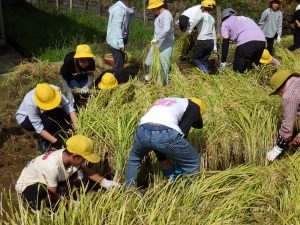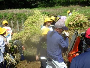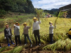 HOME > 教育活動 > イベントギャラリー > 070924 今年も豊作! 070924 今年も豊作! 入力日2025年9月29日 閲覧数36 毎年、5年生が学校近くの田んぼをお借りし、米作りを体験しています。 学校サポーターの梶原さんをはじめ、たくさんの地域の方にお世話になり、今年もたくさんのお米が獲れました。 初めて稲刈りをする子どももおり、楽しんで活動することができました。しかしながら、子どもたちがやっているのはほんの一部。 これまでもまたこの後も、サポーターの皆様がしっかりと管理してくださったおかげです。 感謝の気持ちを忘れずにいてほしいなと思います。 前へ 一覧へ戻る 次へ
