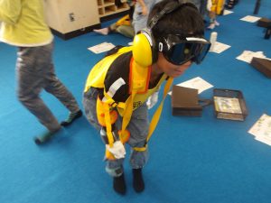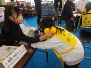 いろいろな装具を付け、目が見えにくかったり、手や足が重く思うように動かなかったり、腰が曲がったままだったりとを実際に体験しました。