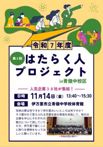 HOME > お知らせ > R7はたらく人プロジェクト R7はたらく人プロジェクト 入力日2025年10月28日 内容今年も市内外の企業の方にご協力いただき開催いたします。5年生から中学3年生まで、それぞれの立場で話を聞き、自分なりに考えを深めてくれることと思います。 閲覧数5 前へ