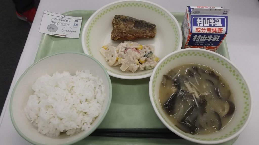 HOME > 今日の給食紹介 > 令和7年9月22日給食 令和7年9月22日給食 入力日2025年9月24日 閲覧数21 【今日の献立(写真は中学校分)】 ・牛乳 ・ご飯 ・さばの更紗揚げ ・れんこんのサラダ ・なすのみそ汁 【感想】 さばは丸ごとサクサク食べられて白いご飯にピッタリのおかずでした! 前へ 一覧へ戻る 次へ