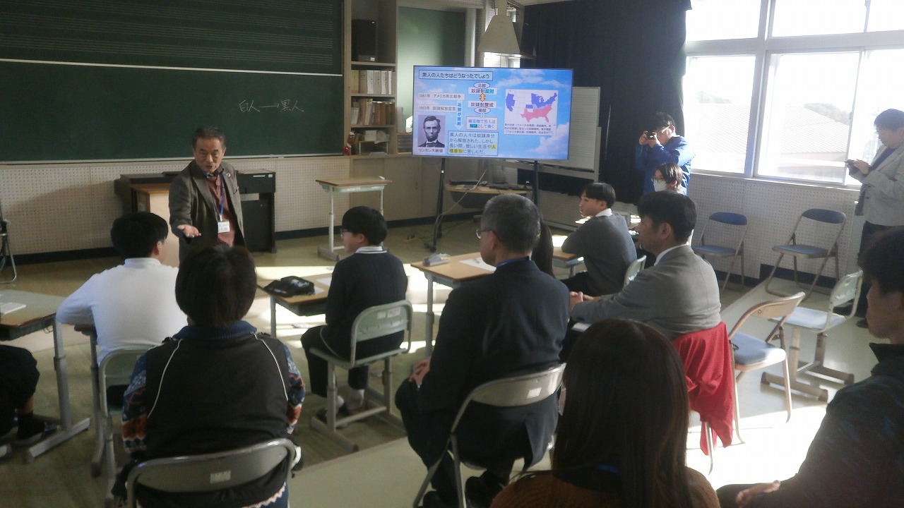 HOME > 教育活動 > イベントギャラリー > 馬渡小中学校人権教室 馬渡小中学校人権教室 入力日2025年12月5日 閲覧数19 12月5日、人権擁護委員の先生方3名をお迎えして、人権教室を実施しました。 5校時には、小学生対象に「自分自身をたいせつにすること」について、読み聞かせを交えて分かりやすくご講話いただきました。 6校時には、中学生を対象に、人種差別解消に向けての取り組みと自分自身の尊厳(誇り)を大切にする事を、詳しく丁寧に伝えて頂きました。 児童生徒にとって、心を耕す時間となりました。お忙しい中ご講話頂いた先生方に感謝申し上げます。 一覧へ戻る 次へ