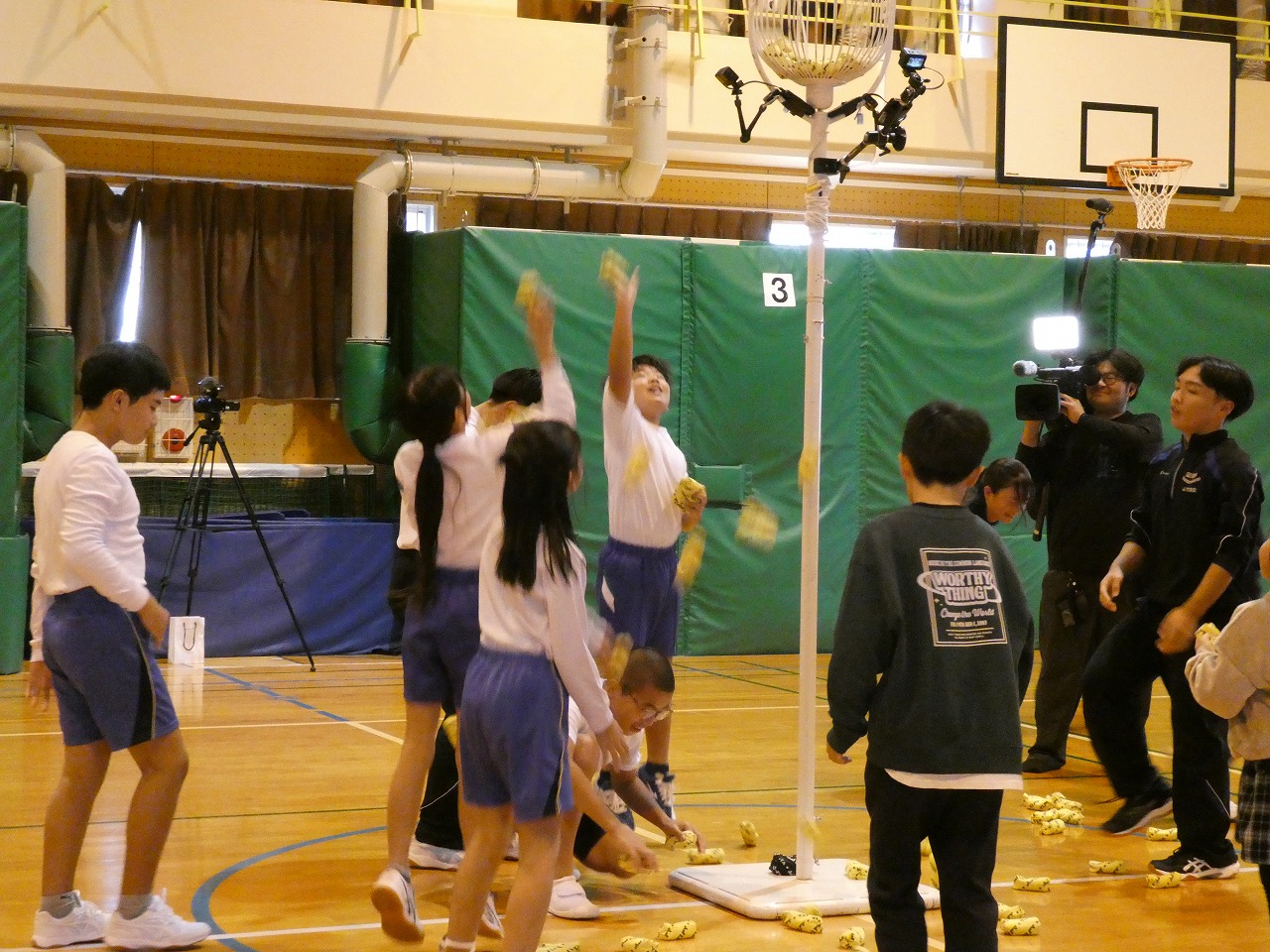 HOME > 教育活動 > イベントギャラリー > KBC 「ぎゅっと」学校対抗玉入れ選手権 KBC 「ぎゅっと」学校対抗玉入れ選手権 入力日2025年12月19日 閲覧数6 九州朝日放送KBCの夕方の情報番組「ぎゅっと」の月曜日のコーナー”学校対抗玉入れ選手権“に馬渡小中学校が出場します。 12月1日(月)に取材がありました。馬渡島や馬渡小中学校の良いところをたくさん伝えることができました。 玉入れはみんなが協力してとてもいい記録がでました。結果は、放送を見てのおたのしみ! 新年1月5日(月)18:00~19:00の時間帯で放送予定です。 一覧へ戻る 次へ