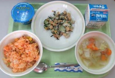 HOME > お知らせ > 今日の給食 > 10月8日 10月8日 入力日2025年10月8日 閲覧数2,532 【 チキンライス ひじきと豆のサラダ アイスクリーム ポトフスープ 牛乳 】 今日はデザートにアイスクリームがありました。数日前から今日のアイスを楽しみにしている人がたくさんいました。 前へ 一覧へ戻る 次へ