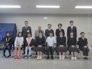 この日は、川柳教室でお世話になっている岩永孝雄さんにも同席してもらい、2~3席、秀作に入賞した8人の児童生徒が出席して報告会を行いました。