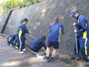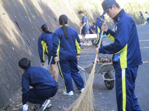HOME > イベントギャラリー > イベントギャラリー > 大野岳清掃活動(11月11日) 大野岳清掃活動(11月11日) 入力日2025年11月12日 閲覧数43 本校美化委員会を中心にして、7・8・9年生の生徒たちで大野岳の清掃活動を行いました。 南波多町の象徴である「大野岳」を清掃することで。地域を大切にする心を育むことを目的に、郷学館開校当時から行われています。 この日は、良い天気に恵まれ、60人の生徒たちが各グループに分かれて、落ち葉を掃いて集めたり、側溝の掃除をしたりしました。 7~9年生みんなで協力しながら取り組むことができました。 前へ 一覧へ戻る 次へ