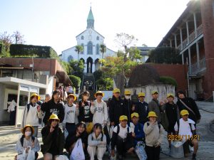 2日目は、長崎の歴史や文化を学ぶフィールドワーク学習です。4つのグループに分かれ、事前に計画したルートで長崎の市街地に行きました。徒歩での移動が主になりますが、途中、路面電車も利用しながらの活動でした。