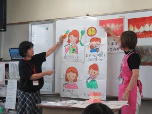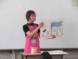 9月18日(木)、佐賀県歯科衛生士会より、中座博子先生にご来校していただき、歯磨き指導と歯の健康講話をしていただきました。