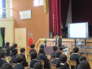 2月13日(金)、全校で「命について考える日」の集会を行いました。