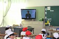 10月の全校集会をテレビ放送で行いました。まず,校長先生からお話がありました。「ありがとう」の大切さについてのお話でした。学校はもちろん,普段の暮らしの中でも,いろいろな場でいろいろな人がみんなのために何かをしてくれています。そんなことに気付いて,「ありがとう」「ありがとうございます」,そんな言葉かけができたらいいですねといったお話でした。お話の中で,1日に10回の「ありがとう」を言ってみませんかという提案もありました。「ありがとう」と言うためには,そうした行為に気付くことが大切です。気付かなければ,「ありがとう」は言えませんから。教室の写真は,1年生の様子です。画面をよく見て,話が聞けていました。