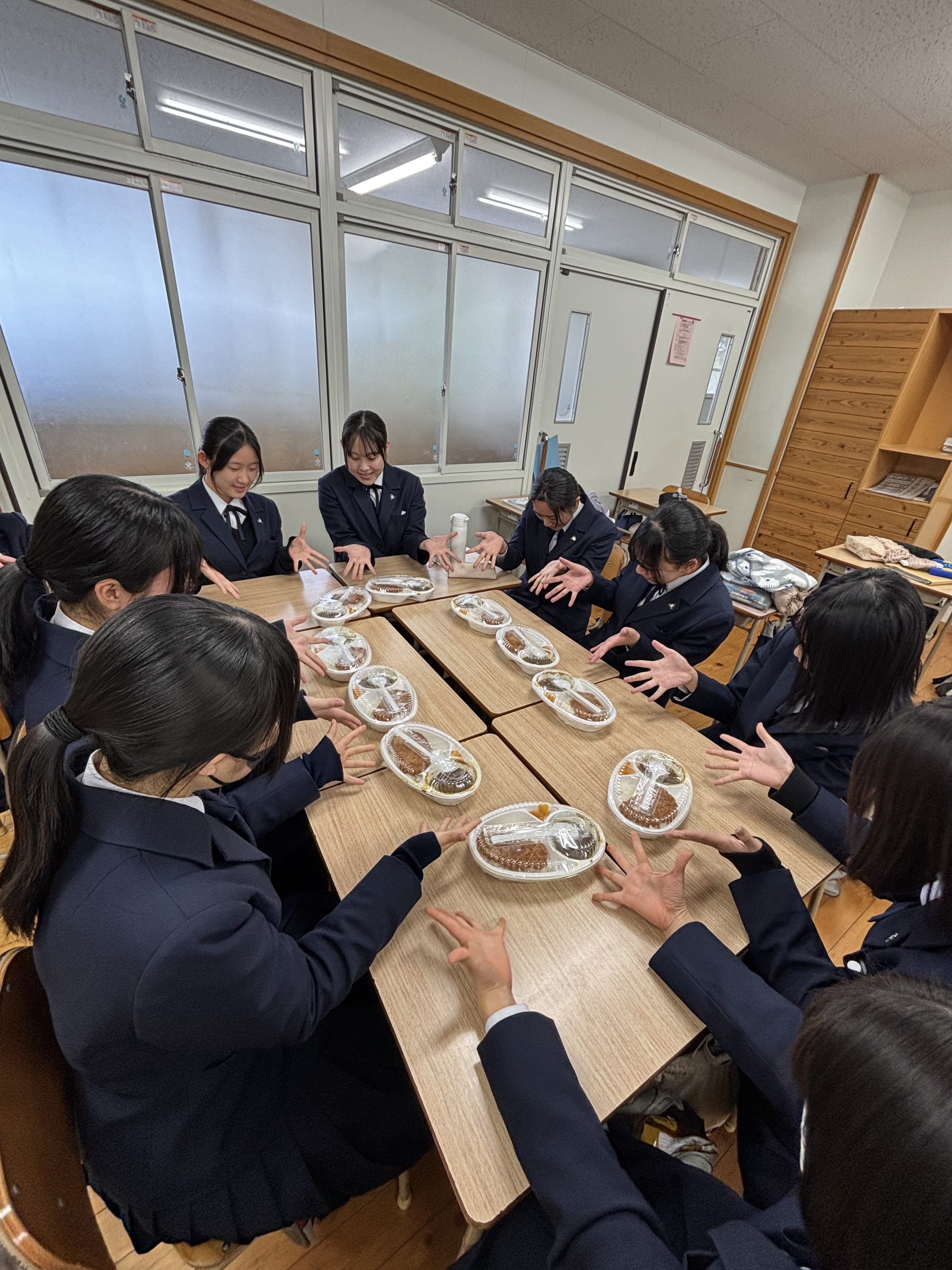 PTA会長様より、「正しい方向性の質と量の努力が大切である。」という内容の励ましのお話の後、受験に勝つ!華麗に勝つ!というお言葉をいただき、全校生徒みんなで美味しいカレーをいただきました。PTAの皆様、ありがとうございました。