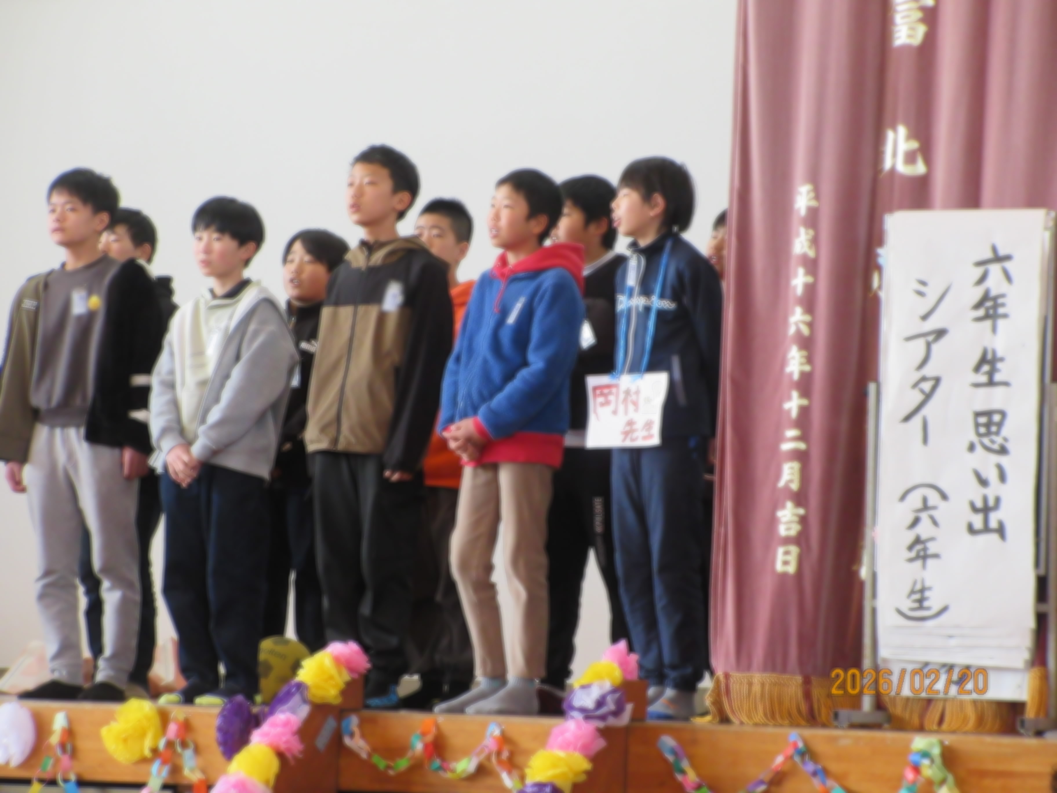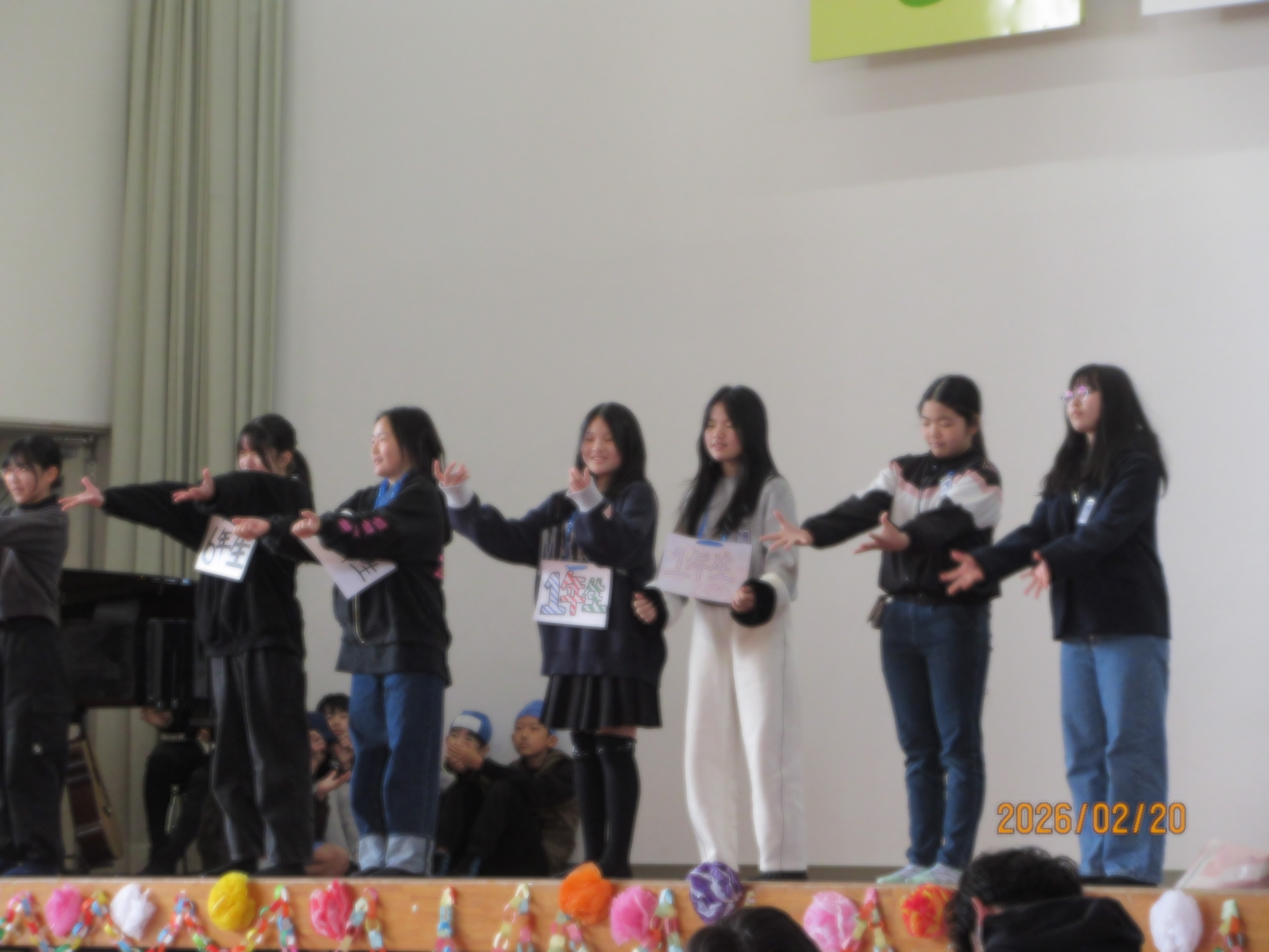 HOME > 北っこギャラリー > 北っ子ギャラリー > 6年生ありがとう集会 6年生ありがとう集会 入力日2026年2月20日 閲覧数37 「6年生ありがとう集会」 どの学年も6年生への感謝の気持ちでいっぱいの発表でした。 6年生は、劇にダンス、歌でこれまでの思い出を振り返る素敵な発表でした。 一覧へ戻る 次へ