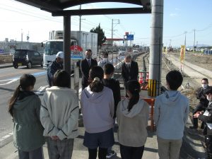 現在、諸富南小学校の近くでは、有明沿岸道路の工事が進んでいます。その工事によってバス停が移動されることになり、新しいバス停に木製のベンチの設置が計画されました。ベンチの製造は工事をされている富士建設さんで、塗装は、本校の6年生が卒業記念を兼ねて行いました。6年生は、「地域の方に利用してもらいたい・ゆっくりバスを待ってもらいたい」などの思いから、一人ひとりが心を込めて色を塗りました。1月18日(火)、椅子が設置される「佐野・三重津歴史館入り口」のバス停において、6年生代表6人が参加しての寄贈式がありました。