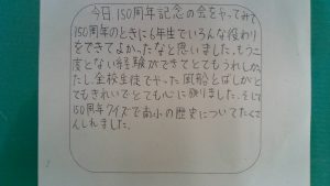 HOME > 教育活動 > 学校行事 > 諸富南小学校創立150周年記念の会 諸富南小学校創立150周年記念の会 入力日2025年12月18日 閲覧数10 12月12日(金)、諸富南小学校創立150周年記念の会を行いました。 来賓として来て下さった地域の方や、手伝って下さったPTAの方々のおかげで、感想にもあるように、子どもたち一人一人の心に残る式典になりました。本当にありがとうございました。 一覧へ戻る 次へ