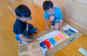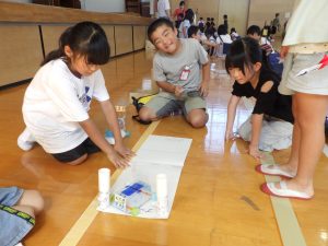 HOME > 教育活動 > 学校行事 > 1・2年生「おもちゃまつり」 1・2年生「おもちゃまつり」 入力日2025年10月22日 閲覧数3 10月17日(金)、2年生が1年生を招待し、おもちゃまつりを開きました。この日のために準備をしてきた2年生。紙ロケットやぴょんコップ、ゲームの的や景品など、たくさんのおもちゃができあがりました。看板を工夫したりと、1年生が楽しむ姿を想像しながら作りました。当日は大きな声を出してお客さんの1年生を呼び込みました。最初は遠慮がちだった1年生でしたが、好きなお店屋さんを見つけて、何度も足を運ぶ姿が見られました。楽しいゲームや手作りの景品をもらって、1年生が喜ぶ姿に、2年生も笑顔でいっぱいでした。 前へ 一覧へ戻る 次へ