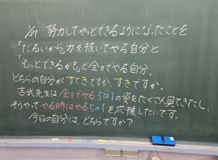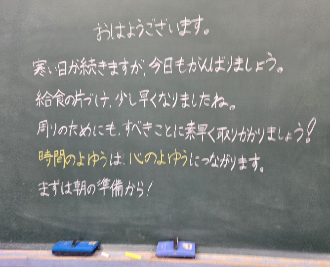 HOME > イベントギャラリー > 0127 今日のパチリ 0127 今日のパチリ 入力日2026年1月27日 閲覧数227 1年生の教室をぱちり 卒業まで6年生登校のこり31日ぱちり 前へ 一覧へ戻る 次へ