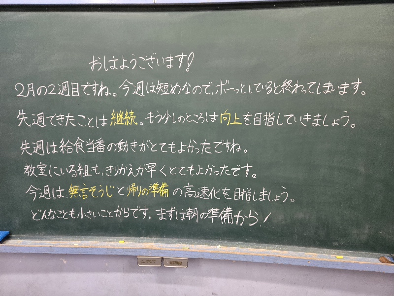 HOME > イベントギャラリー > 0209 今日のぱちり 0209 今日のぱちり 入力日2026年2月9日 閲覧数12 朝の時間子どもたちの教室 回りました。学年で10名ぐらいのお休みはいますが、えがおがたくさん教室にありました。 子どもたちの居場所 学校 温かいえがお 元気な友だち おかえりです。 一覧へ戻る 次へ