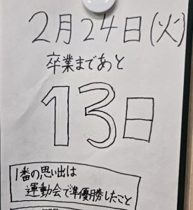HOME > イベントギャラリー > 0224 今日のぱちり 0224 今日のぱちり 入力日2026年2月24日 閲覧数378 朝、片手に傘をもっている子をたくさんみました。ありがとうございます。 くすの木の実 たくさん落ちていました パチリ 6年生ありがとうのメッセージが たくさん飾られています ぱちり 前へ 一覧へ戻る 次へ