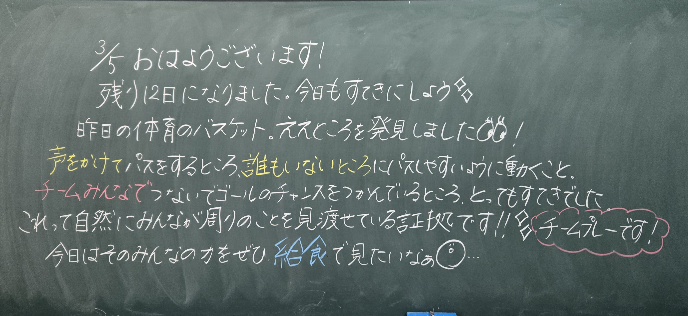 HOME > イベントギャラリー > 0305 今日のぱちり 0305 今日のぱちり 入力日2026年3月5日 閲覧数154 1年2組担任インフルの ため、今週はいろいろな先生と勉強しています。子どもたちよく頑張っています うさぎも元気に生活しています。飼育委員会よく世話をしています ミモザもぱちり今朝の おぼろ月ぱちり たかまど開けは私の仕事です。ぱちり 一覧へ戻る 次へ