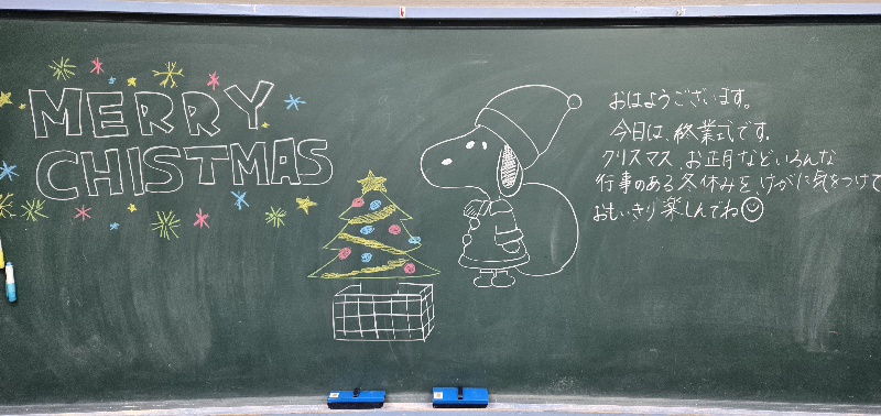 HOME > イベントギャラリー > 1224 今日のパチリ 1224 今日のパチリ 入力日2025年12月24日 閲覧数236 2学期最後のパチリ よい年末年始をお過ごしください 保護者さまの本校教育に対するご協力を感謝いたします。 一覧へ戻る 次へ