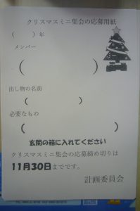HOME > お知らせ > イベントギャラリー > 11/17クリスマスミニ集会 11/17クリスマスミニ集会 入力日2023年11月17日 閲覧数323 子供たちからの提案で、12月14日(木)の昼休みにクリスマスミニ集会を開くことになりました。どんな出し物が出るのか楽しみですが、みんなの前で発表する個人やグループを募集するポスターを3年生が作ってくれました。発表者が多い場合は、次の日も開催するかもしれません。 前へ 一覧へ戻る 次へ