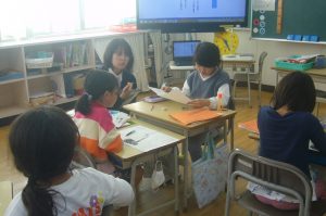 HOME > お知らせ > イベントギャラリー > 11/9研究授業_1年生 11/9研究授業_1年生 入力日2023年11月9日 閲覧数406 昨日、校内授業研究会で1年生の国語の授業を全職員で参観しました。「じどう車くらべ」で学習したことをもとに自分たちの「じどう車ずかん」を作るために、はしご車の「しごと」と「つくり」をまとめていく活動でした。1枚の絵とはしご車を紹介する動画から文を作っていくことはなかなか難しそうでしたが、作った文を友達と紹介し合いながら図鑑の完成を目指しています。 前へ 一覧へ戻る 次へ