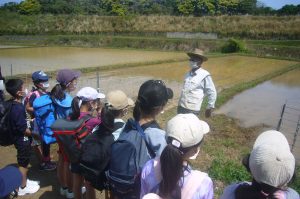 HOME > お知らせ > イベントギャラリー > 4/22_田植え体験_5年生 4/22_田植え体験_5年生 入力日2022年4月22日 閲覧数304 5年生が米作りの学習の中で、酒井先生に教えてもらいながら田植えに挑戦しました。天気も良く、17人がそろって体験できて良かったです。8月のお盆を過ぎたころに稲刈りができるようです。 前へ 一覧へ戻る 次へ