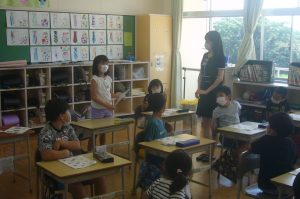 HOME > お知らせ > イベントギャラリー > 9/15韓国学習1・2・3年生 9/15韓国学習1・2・3年生 入力日2022年9月15日 閲覧数376 名護屋城博物館館から日韓交流センターのチョンイエウォン先生に来ていただいて、1~3年生が2回目の韓国学習をしました。韓国の「お盆」についての話を写真や動画を使って説明していただきました。 また、動物や果物の韓国語での言い方を習い、それを使って韓国語で自己紹介をする活動を楽しみました。子供たちは1学期の学習をよく覚えていて、進んで手を挙げて自己紹介に挑戦していました。 前へ 一覧へ戻る 次へ