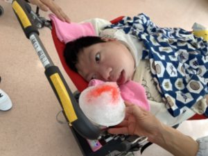 HOME > Pick up! > 分校舎学習の様子 分校舎学習の様子 入力日2025年12月17日 閲覧数3 ★秋祭り 病棟ごとに秋祭りを行いました。手作りの提灯を持っておみこしをお迎えした後、みんなで出店を楽しみました。くじを引いてお面をもらい、ヨーヨー釣りで好きなヨーヨーをゲット!かき氷屋さんではシロップを選んでその場で作ってもらいました。 一覧へ戻る 次へ