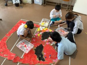 同じF課程の友達と色々な勉強に取り組んでいます。体を動かしたり、制作活動をしたり、楽しく仲良く頑張っています。