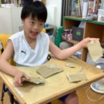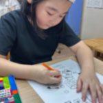 色や塗り方を工夫しながら体育祭のポスターを仕上げました。国語や算数の学習も楽しんで取り組んでいます。週に1~2回、オンライン授業にも参加しています。