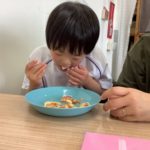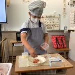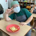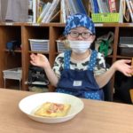 調理活動でピザトーストを作りました。食パンにケチャップをぬって、ハムやチーズをのせて焼き、おいしいピザトーストが出来上がりました。