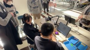 久留米工業大学「地域課題解決型AI教育プログラム」に参加し、共同で「特別支援学校向けAIレジスターの改良と校外販売会での運用支援」に取り組んでいます。これは、中学部の作業学習で製品販売の際のタスクを軽減し、生徒が安心して、落ち着いて清算業務に取り組めることを目指したものです。画像認識AIを用いた製品タグ(値札)や受取金額の読み込みを実装しており、今年度は、実際に校外販売会での実証を行いました。生徒たちが分かりやすいように、開発学生たちがUI(操作画面)の工夫も行ってくれました。