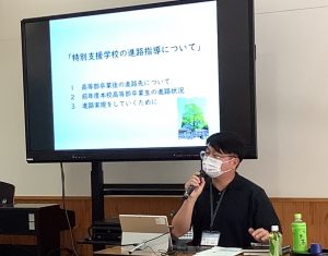 初めに、実習先や進路先の決定に向けての流れを丁寧に説明していただき、次に、卒業生の事例もお話しいただきました。卒業後にも成長や変化があること、自己理解が大切であることなど、たくさんの気付きがありました。また、今のうちからいろいろな経験をしておくことで、好きなことや苦手なこと、本人がしたいことやできること、支援が必要なところなどが分かってくるというお話もあり、家でできることを少しずつでもやっていこうと前向きになれる研修会でした。