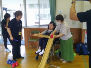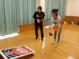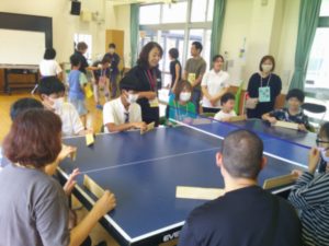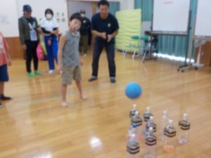 10月4日(土)のPTA親子レクリエーションでは、今年度も佐賀県パラスポーツ協会の協力を得て、パラスポーツ体験教室を実施しました。「卓球バレー」「ボッチャ」「フライングディスク」「ボウリング」「ビーンバッグ投げ」「スラローム」「ラダーゲッター」「バッコー」の種目を各会場を巡って体験しました。