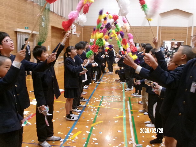 HOME > 行事のようす > 子どもたちの様子 > 6年生を送る会 6年生を送る会 入力日2026年3月11日 閲覧数19 2月28日(土)に「6年生を送る会」を行いました。 今まで、仁比山小学校のリーダーとして活躍してくれた6年生に、感謝の気持ちを伝えました。どの学年も、心をこめた出し物で、6年生を笑顔にすることができました。6年生と残りの日々を、大切に過ごしていきます。 一覧へ戻る 次へ