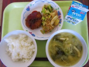 HOME > 今日の給食 > 4月27日(木) 4月27日(木) 入力日2023年4月28日 閲覧数203 今日の献立は『ごはん、牛乳、手作りメンチカツ、中華風ツナポテト、新玉ねぎとえのきの味噌汁』です。 牛ひき肉、豚ひき肉、玉ねぎ、チーズをいれて作りました。 ジューシーなメンチカツです。調理員さんが心をこめて作ってくださいました。 前へ 一覧へ戻る 次へ