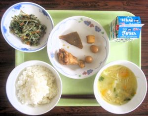 HOME > 今日の給食 > 9月25日(木) 9月25日(木) 入力日2025年9月25日 閲覧数62 今日の献立は「ご飯、牛乳、さっぱり煮、磯香和え、冬瓜と油揚げの味噌汁」です。 今日は、さっぱり煮です。普通の煮物とは違い酢を使っています。 酢を使うことで肉をやわらかくしてくれたり、生臭いにおいも少なくしてくれます。 また、酢を使うことで、さっぱりとした味付けになるので、暑い時季にはピッタリです。 手羽元、厚揚げ、こんにゃく、うずら卵を煮込みました。 前へ 一覧へ戻る 次へ