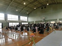 体育館には、6年生しか入りませんでしたが、2~5年生もライブ中継を見て、入学式に参加しました。