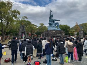 1日目は、戦争と平和について学び、実際に被爆者の方に話を聞ける貴重な体験をしました。また、平和記念像の前では、「空は今」を歌い、平和な世の中が続くようにとみんなで誓いました。