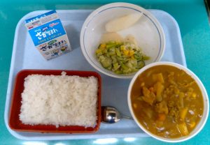 HOME > 学校生活 > 今日の給食 > 10月1日(水)ごはん 牛乳 ポークカレー グリーンサラダ 梨 10月1日(水)ごはん 牛乳 ポークカレー グリーンサラダ 梨 入力日2025年10月1日 閲覧数23 今月の給食目標について 10月(がつ)の給食(きゅうしょく) 目標(もくひょう)は「秋(あき)の味覚(みかく)を楽(たの)しもう!」です。 秋(あき)の食(た)べ物(もの)といったらどんな食(た)べ物(もの)を思(おも)い浮(う)かべますか?「さつまいも」に「きのこ」「くり」「さんま」などたくさんありますね。食欲(しょくよく)の秋(あき)!といわれるように、秋(あき)にはおいしい食(た)べ物(もの)がたくさん登場(とうじょう)します。今月(こんげつ)はみんなで秋(あき)の味覚(みかく)を楽(たの)しみましょう! 前へ 一覧へ戻る 次へ