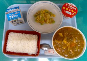 11月10日(月)ごはん 牛乳 根菜カレー 枝豆とキャベツのサラダ ヨーグルト