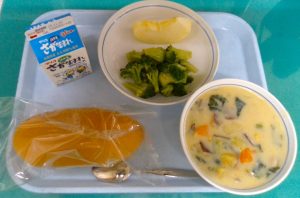 HOME > 学校生活 > 今日の給食 > 11月7日(金)ミルクパン 牛乳 さつまいもシチュー ブロッコリー りんご 11月7日(金)ミルクパン 牛乳 さつまいもシチュー ブロッコリー りんご 入力日2025年11月7日 閲覧数30 さつまいもについて さつまいもは秋(あき)が旬(しゅん)の食(た)べ物(もの)です。さつまいもにはビタミンCや食物繊維(しょくもつせんい)が多(おお)く入(はい)っています。ビタミンCは「ひふ」をつくってくれたり、風邪(かぜ)の予防(よぼう)をしてくれます。食物(しょくもつ)繊維(せんい)はお腹(なか)の調子(ちょうし)を整(ととの)えてくれます。おいしい旬(しゅん)のさつまいもをあじわっていただきましょう。 前へ 一覧へ戻る 次へ