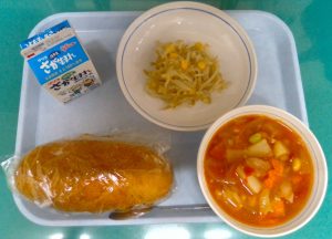 ミネストローネは、イタリア生(う)まれのスープで、具(ぐ)だくさんなのが特徴(とくちょう)です。本格的(ほんかくてき)な作(つく)り方(かた)は、深(ふか)い鍋(なべ)にバターをとかし、ベーコン、みじん切(ぎ)りのにんにくを炒(いた)め、 じゃがいも、にんじん、玉(たま)ねぎ、白(しろ)いんげん、かぶ、セロリー、キャベツ、その他(た)季節(きせつ)の新鮮(しんせん)な野菜(やさい)を入れてブイヨンを加(くわ)え、皮(かわ)をむいた角切(かくぎ)りのトマトを入れ、野菜(やさい)が柔(やわ)らかくなるまで煮(に)ます。ゆでたスパゲッティや米(こめ)を加(くわ)え、塩(しお)、コショウで味(あじ)を整(ととの)え、パセリ、パルメザンチーズを添(そ)えると完成(かんせい)です。野菜(やさい)たっぷりの具(ぐ)たくさんスープお家(うち)でもぜひ作(つく)ってみてください。 |
