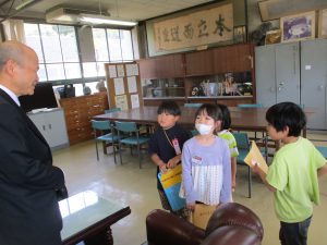 HOME > 学校の様子 > イベントギャラリー > 令和6年4月19日 学校を探検したよ! 令和6年4月19日 学校を探検したよ! 入力日2024年5月8日 内容4月19日(金)に1年生の学校探検が行われました。案内役は2年生。まだまだ、学校の様子が分からない1年生を連れて、学校の中を紹介してくれました。 校長室です。校長先生から話を聞きました。 保健室です。けがや病気の時にお世話になります。 2年生のみなさんが案内してくれました。 閲覧数460 前へ 次へ